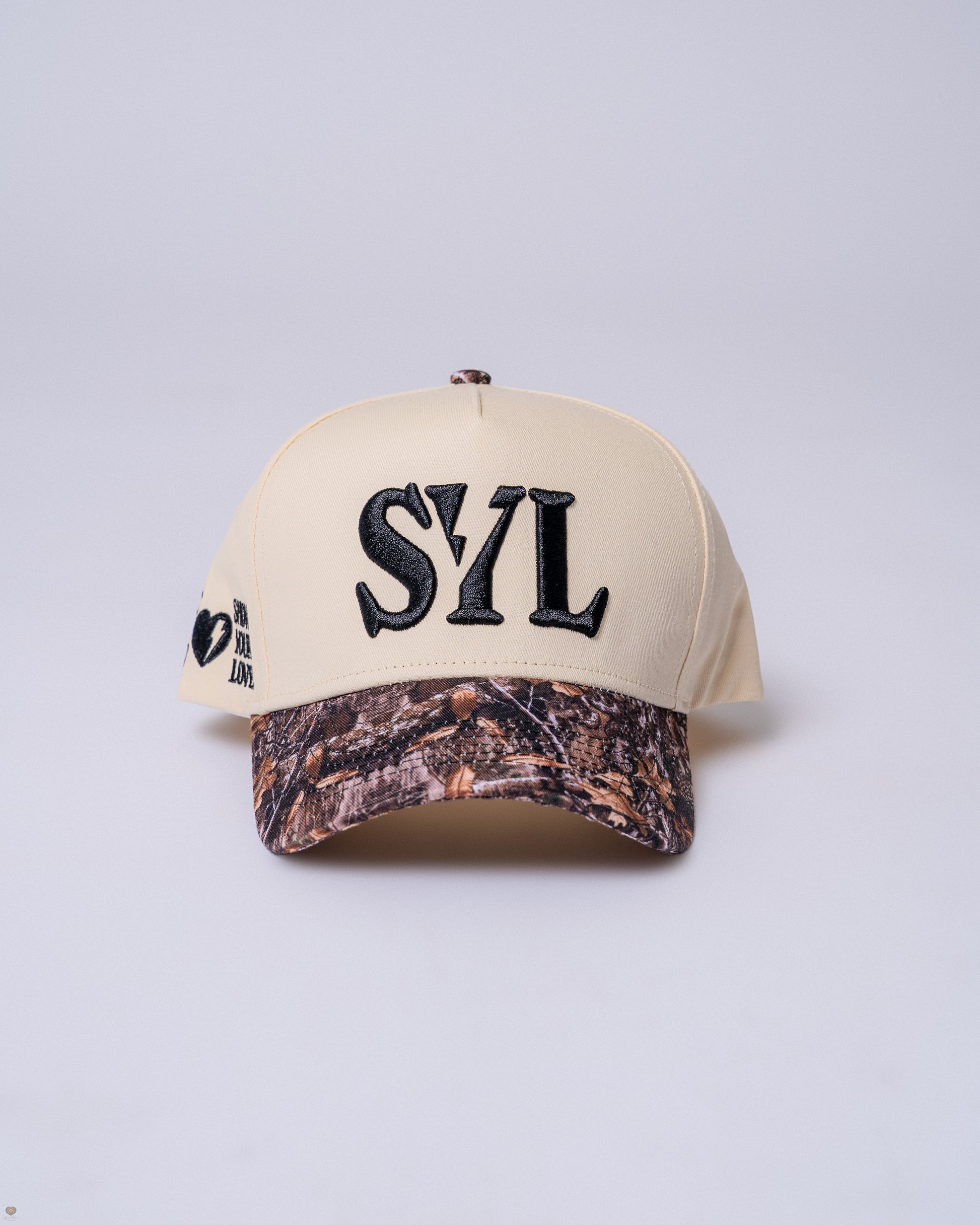 Clean up your fit with this beige trucker hat featuring a bold camo bill. This unique combo brings together neutral tones with a rugged edge, perfect for everyday wear or leveling up your street style. Made from high-quality foam with a structured front and smooth all-around finish — no mesh, just clean lines and serious style.